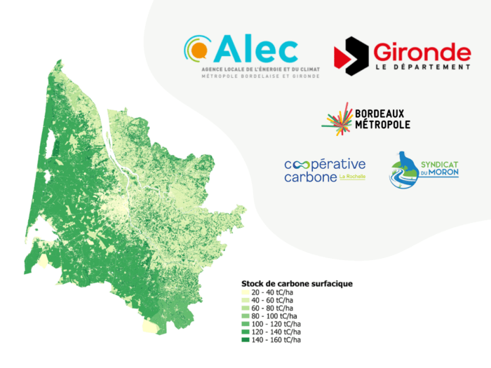 Pour dresser un panorama précis de la Gironde, l’Alec s’appuie sur différentes sources de données, telles que l’outil ALDO de l’ADEME ou l’observatoire NAFU, afin de produire une cartographie fine et fiable des stocks de carbone selon les typologies d’occupation du sol. Chaque type de sol ou usage du territoire est ainsi associé à un stock de carbone spécifique.