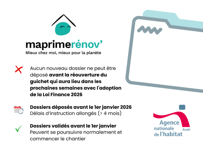 La réouverture de MaPrimeRénov’ interviendra avec la promulgation de la loi de finances 2026 et permettra de reprendre progressivement, avec d’abord l’instruction des dossiers en attente depuis fin 2025.